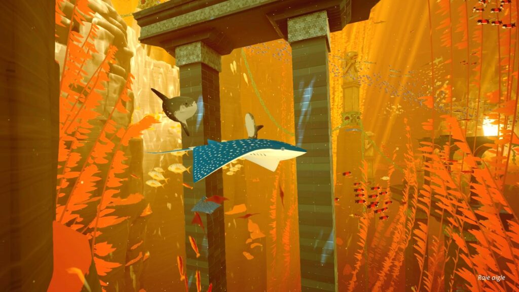 Ce voyage initiatique surréaliste nous fait traverser de manière intelligente une multitude d’habitats marins particulièrement bien reproduits par le studio américain Giant Squid. Des forêts d’algues parcourues par des poissons et des petits requins. Les abysses et leur biodiversité aux formes improbables. L’océan ouvert avec ses géants inlassables arpenteurs des espaces marins. Même les écosystèmes préhistoriques sont représentés avec brio. Chacun de ces biomes est représenté avec des espèces réelles. Le nom scientifique de chacune de ces dernières est d’ailleurs fidèlement fourni au joueur qui souhaite parfaire ses connaissances.