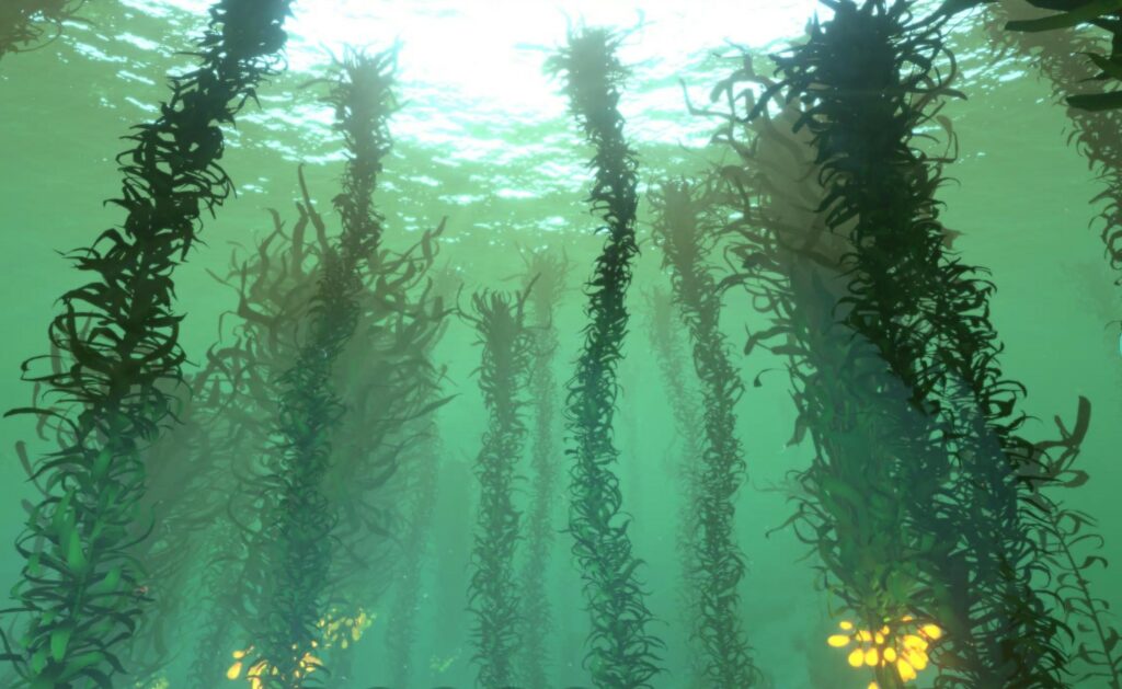 Les forêts d’algues géantes de la planète 4546B dans Subnautica ressemblent beaucoup aux forêts sous-marines de laminaires géantes comme Macrocystis pyrifera sur les côtes tempérées à l’est de l’océan Pacifique.